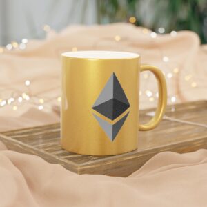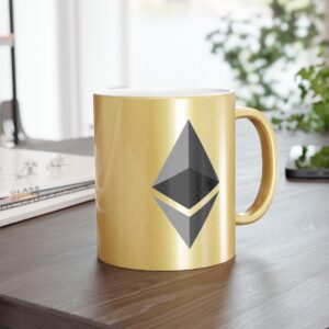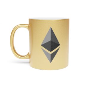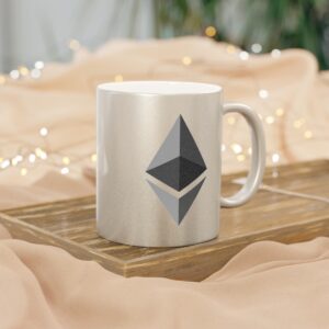 Ethereum metallic coffee mugs are the perfect way to begin or end your day. These 11oz mugs are made with ceramic material that can be coated with either a Gold or a Silver coating for extra flashy looks. Add your own designs on either one or both sides and bring your favorite mug to life. NOTE: Black designs will print the best due to the nature of the coating. White will be completely transparent.